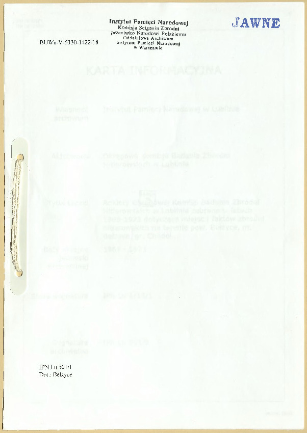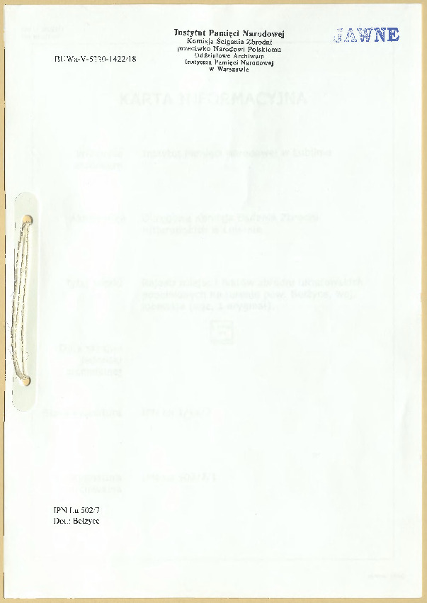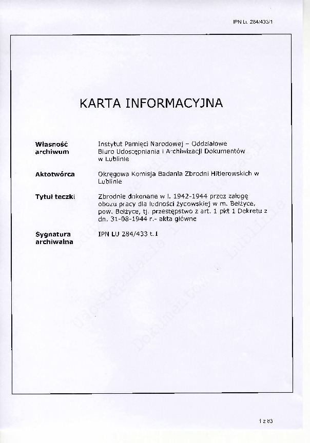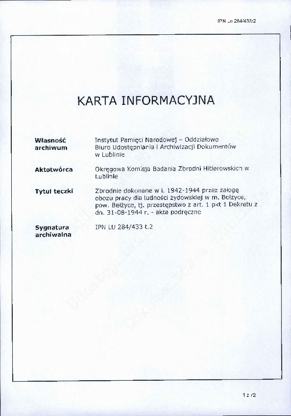 Bełżyce Karta Informacyjna IPN Lu 284/433 - 1-thumbnail