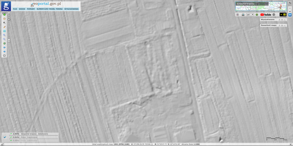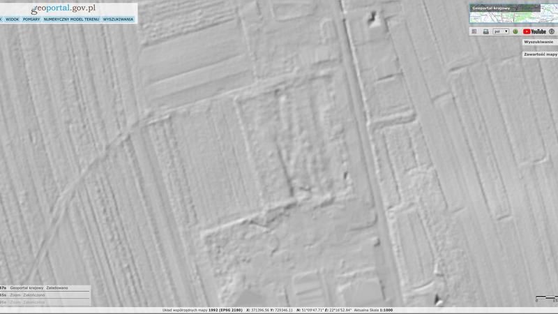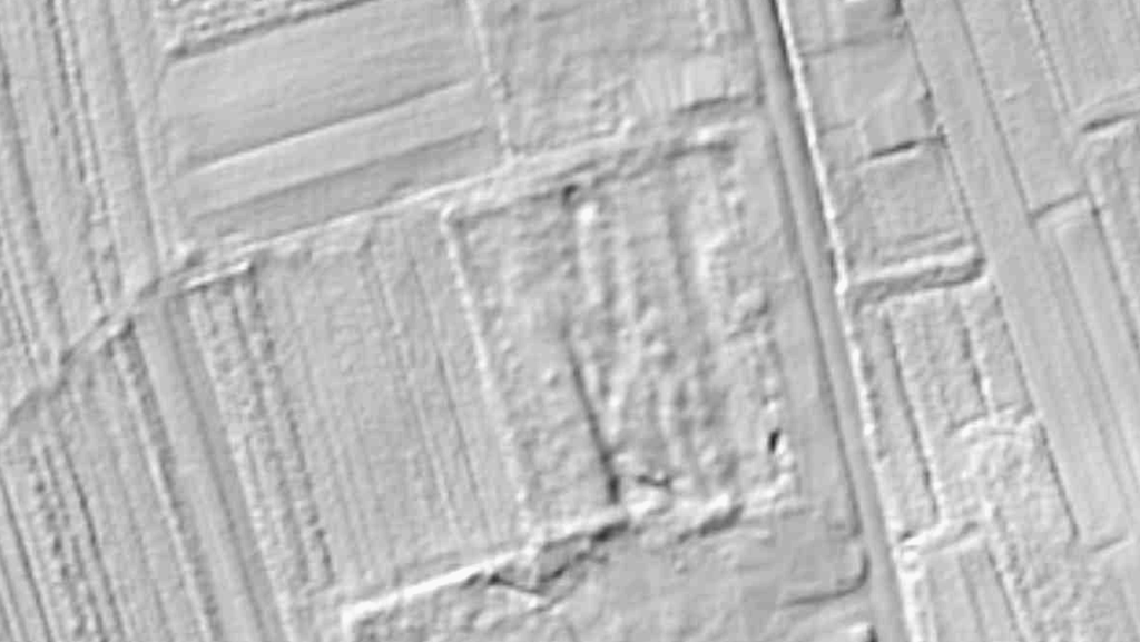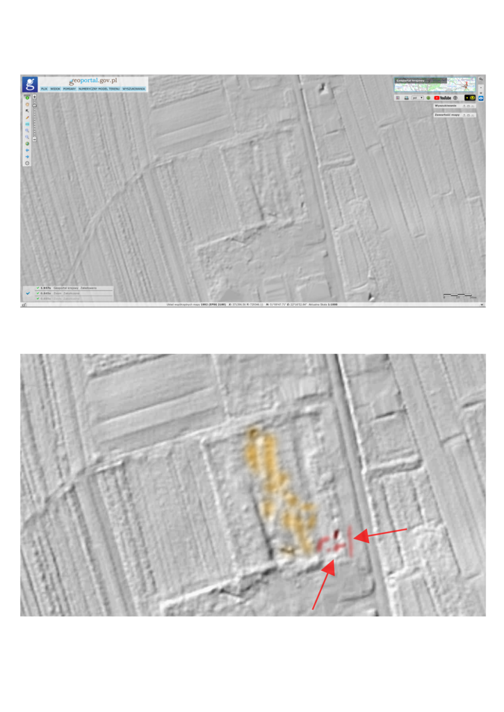 Obraz rzeźby terenu (LiDAR) potwierdza naruszenia gleby w południowo-wschodnim narożniku, ale także rozległe zapadliska biegnące przez cmentarz w osi północ-południe. Część powyżej wspomnianych naruszeń gleby pokrywa się z naruszeniami widocznymi na zdjęciu lotniczym. Zwracając uwagę na duże formaty widocznych depresji, można przyjąć, że powody ich istnienia mogą być rozliczne.
