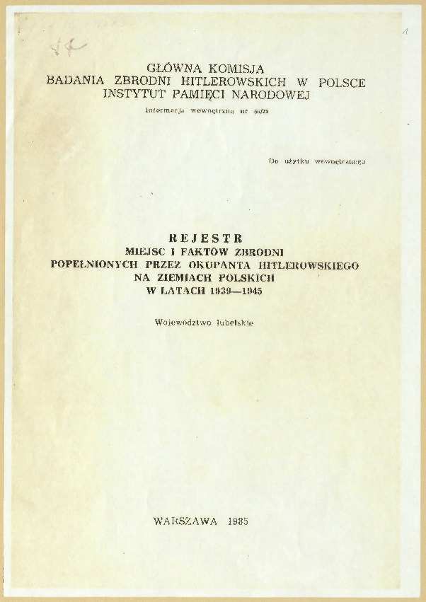 Rejestr miejsc i faktów zbrodni popełnionych przez okupanta hitlerowskiego na ziemiach polskich w latach 1939-1945. Woj. lubelskie, oprac. Główna Komisja Badania Zbrodni Hitlerowskich w Polsce, Warszawa 1985, s. 13, 21, 114.