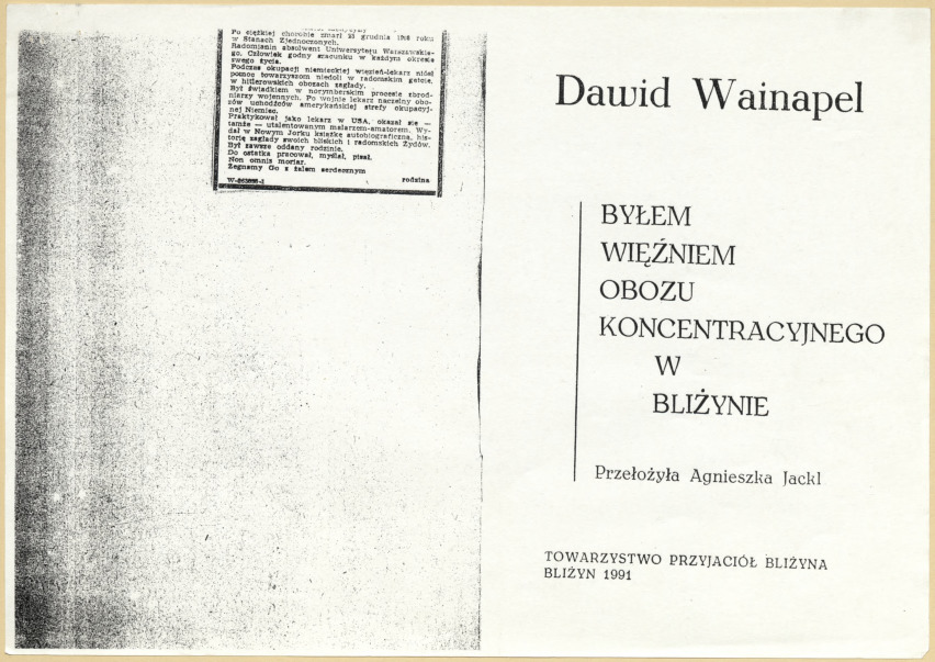 Wainapel D., Byłem więźniem obozu koncentracyjnego w Bliżynie, Bliżyn: Towarzystwo Przyjaciół Bliżyna, 1991.