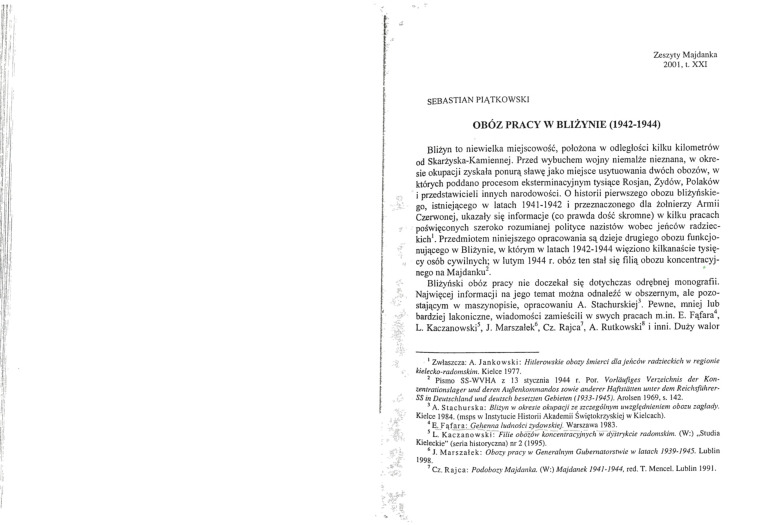 Piątkowski Sebastian, Obóz pracy w Bliżynie (1942-1944), [w:] „Zeszyty Majdanka”, 2001, t. XXI.