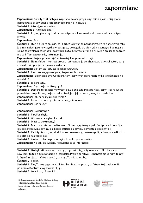 Dziękujemy International Holocaust Remembrance Alliance za dofinansowanie projektu badawczego, dzięki któremu zdobyliśmy materiały dotyczące tej miejscowości. Materiały do tej strony zostały opracowane, zdigitalizowane i udostępnione w ramach projektu “Rozwój cyfrowego archiwum żydowskich grobów wojennych poza obozami Zagłady i edukacyjne wykorzystanie zasobów archiwum”, ze środków Ministra Kultury i Dziedzictwa Narodowego pochodzących z Funduszu Promocji Kultury.