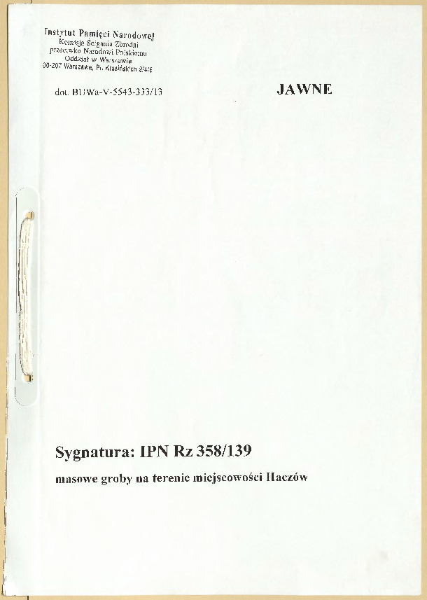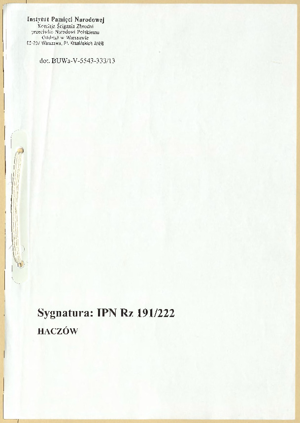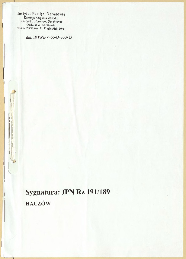 IPN Rz 191-189 Rejestr miejsc i Faktów Zbrodni Hitlerowskich - Haczów