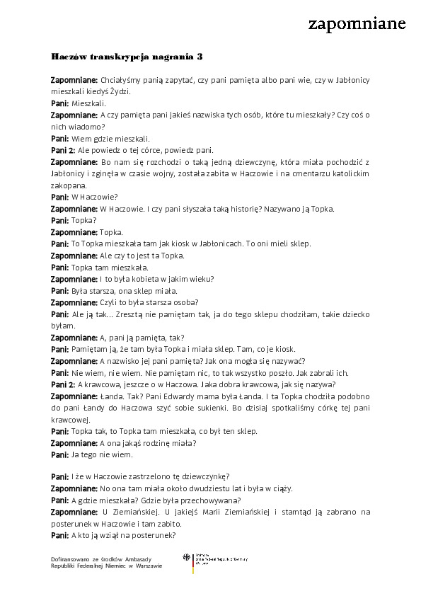 Nadal poszukujemy informacji nt. tożsamości żydowskich ofiar w Haczowie. Jeżeli wiesz coś więcej napisz do nas na adres mailowy: fundacjazapomniane@gmail.com.