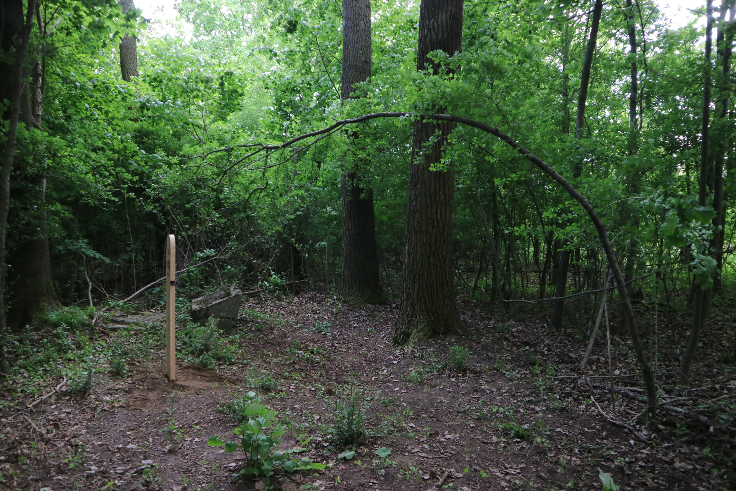 Miejsce grobu zostało oznaczone drewnianą macewą w 2020 roku ramach projektu “Punkty Odniesienia – oznakowanie 24 żydowskich grobów wojennych drewnianymi macewami.”. Punkty odniesienia” to próba znalezienia sposobu na znakowanie odnalezionych mogił, zanim możliwe będzie ich upamiętnienie. Działanie ma na celu drobną ingerencję w krajobraz tych miejsc, która przypominałaby o tym, co w nim niewidoczne, a często obecne w pamięci lokalnych społeczności. Będąc jedynie tymczasowym upamiętnieniem, drewniane macewy mają otwierać możliwość przejęcia przez lokalne społeczności opieki nad tymi miejscami, oswojenia ich, a być może także uruchomienia własnych, związanych z nimi praktyk lub trwałego ich upamiętnienia.