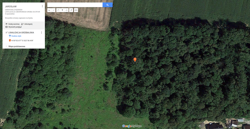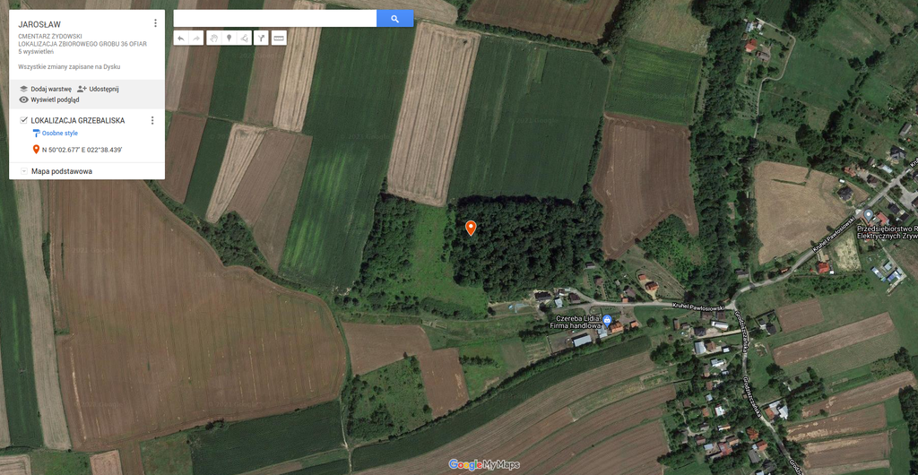 W dniu 01.06.20 r. przedstawiciel Komisji Rabinicznej ds. Cmentarzy i Fundacji Zapomniane (Aleksander Schwarz) odbył wizję lokalną na cmentarzu żydowskim w Jarosławiu w celu lokalizacji zbiorowego grobu trzydziestu sześciu ofiar, przywiezionych z Wólki Pełkińskiej w sierpniu 1943 r. Podczas wizji miejsce zbiorowego grobu, zostało precyzyjnie wskazane (GPS: N50°02.677’E022°38.439′) zgodnie z przekazem świadka/świadków oraz opisem lokalizacji. Miejsce to charakteryzuje się wyraźnie widoczną depresją o przybliżonym formacie: dł. 4.0 – 5.0 mb, szer. 1.0-1.5 mb. W miejscu złożenia ofiar rosną dwa duże drzewa, posadzone tam w celu naturalnego zaznaczenia miejsca zbiorowego pochówku. Ponadto przy zbiorowym grobie potomkowie upamiętnili płytą nagrobną jedną z ofiar spoczywającą w grobie zbiorowym, Chaję Brenner zamordowaną prawdopodobnie w dniu 12.08.1943 r. w Wólce Pełkińskiej i pochowanej na cmentarzu w Jarosławiu.