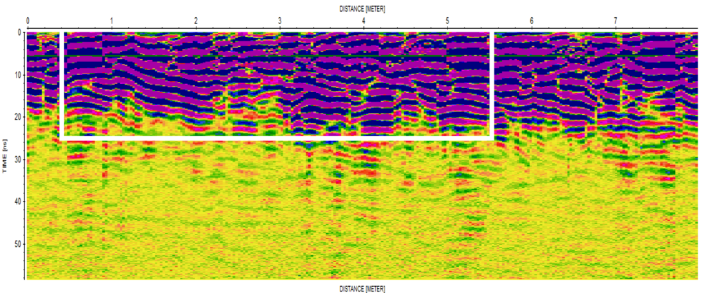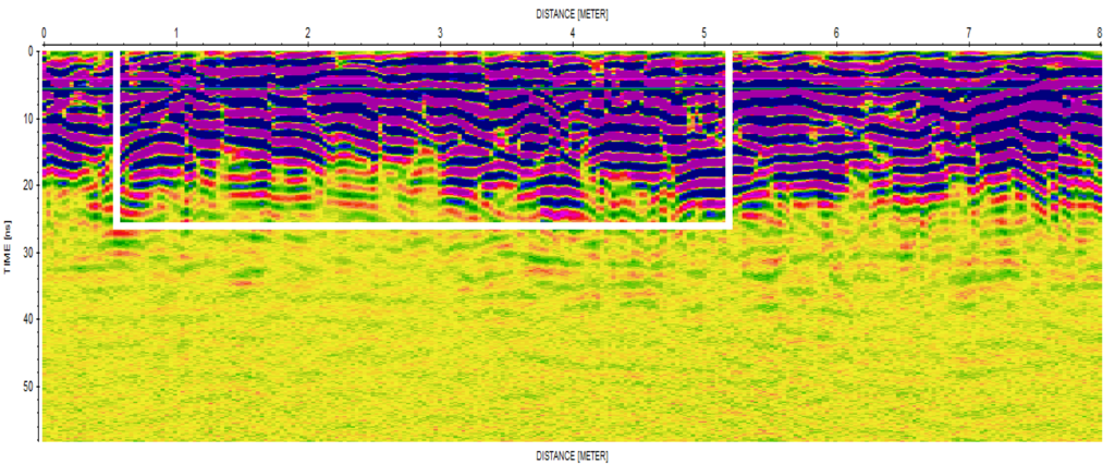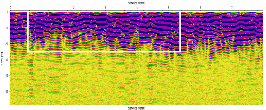 W miejscu wskazanym jako zbiorowy grób przeprowadzono badania z użyciem georadaru firmy MALA GeoScience – RAMAC X3M 500MHz. Wykonano cztery profile w osi długości depresji, które nazwano JAR10002 – JAR10005 oraz trzy profile w osi szerokości depresji, które nazwano JAR20001 – JAR20003. Celem badań było zebranie i interpretacja danych pod kątem oszacowania wymiarów anomalii we wskazanym obszarze. Poniżej w tabeli anomalii (kompletna wersja raportu do pobrania) dla profili JAR1 oraz JAR2 podano przybliżone wymiary większych anomalii zarejestrowanych podczas badań. Podczas interpretacji wzięto pod uwagę anomalie pochodzące od korzeni drzew porastających teren w tej lokalizacji. Wartości podane w tabeli anomalii są przybliżone.