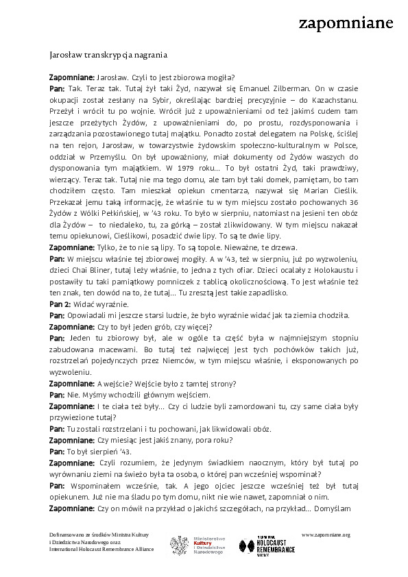 Nadal poszukujemy informacji nt. tożsamości żydowskich ofiar w miejscowości Jarosław. Jeżeli wiesz coś więcej napisz do nas na adres mailowy: fundacjazapomniane@gmail.com.
