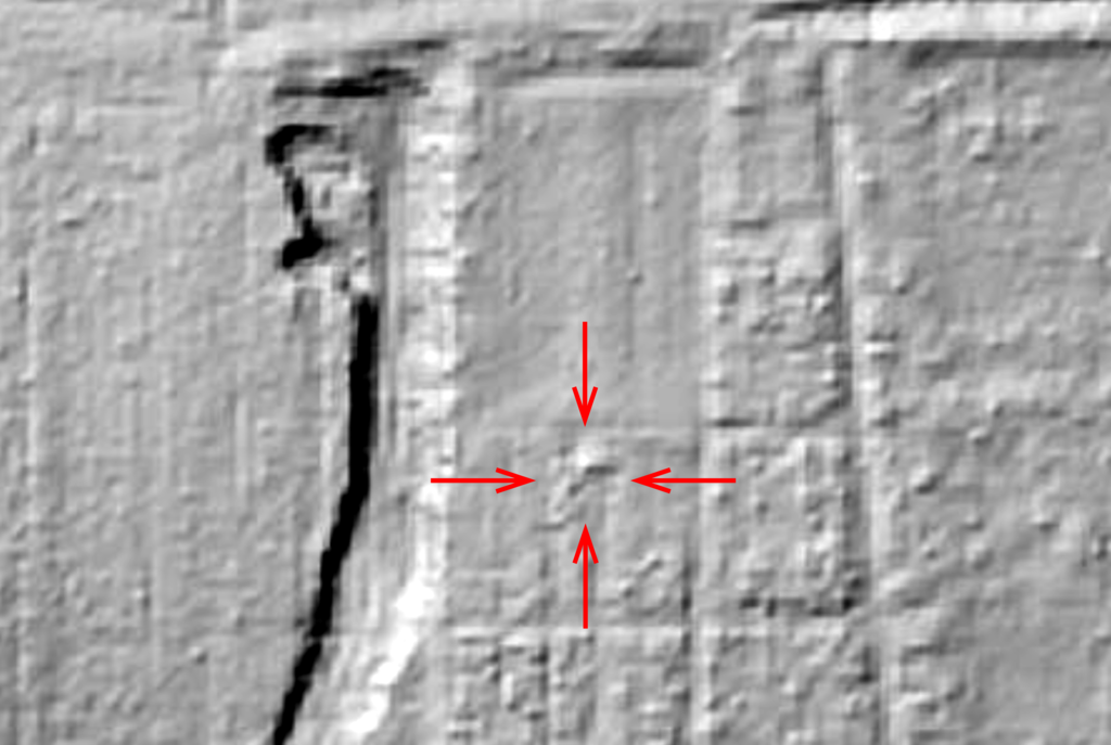 Na fotografii wyraźnie widać granice cmentarza, a także poszczególne kwatery w zachodniej części. W miejscu wskazanym widoczne bardzo wyraźne naruszenie gleby w formie podłużnego pasa na osi północ- południe. Ponadto widoczne są mniejsze, punktowe naruszenia w rozległej kwaterze graniczącej z polem od strony zachodniej granicy cmentarza.