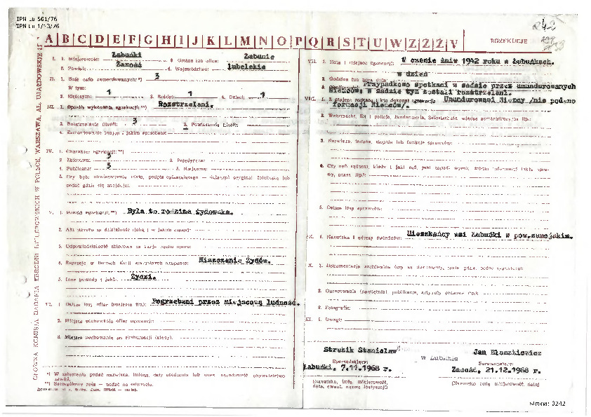 IPN Lu 501-76 Ankieta egzekucje - Łabuńki