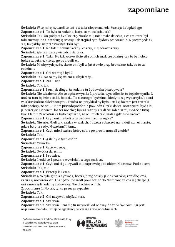 Dziękujemy International Holocaust Remembrance Alliance za dofinansowanie projektu badawczego, dzięki któremu zdobyliśmy materiały dotyczące tej miejscowości. Materiały do tej strony zostały opracowane, zdigitalizowane i udostępnione w ramach projektu “Rozwój cyfrowego archiwum żydowskich grobów wojennych poza obozami Zagłady i edukacyjne wykorzystanie zasobów archiwum”, ze środków Ministra Kultury i Dziedzictwa Narodowego pochodzących z Funduszu Promocji Kultury.