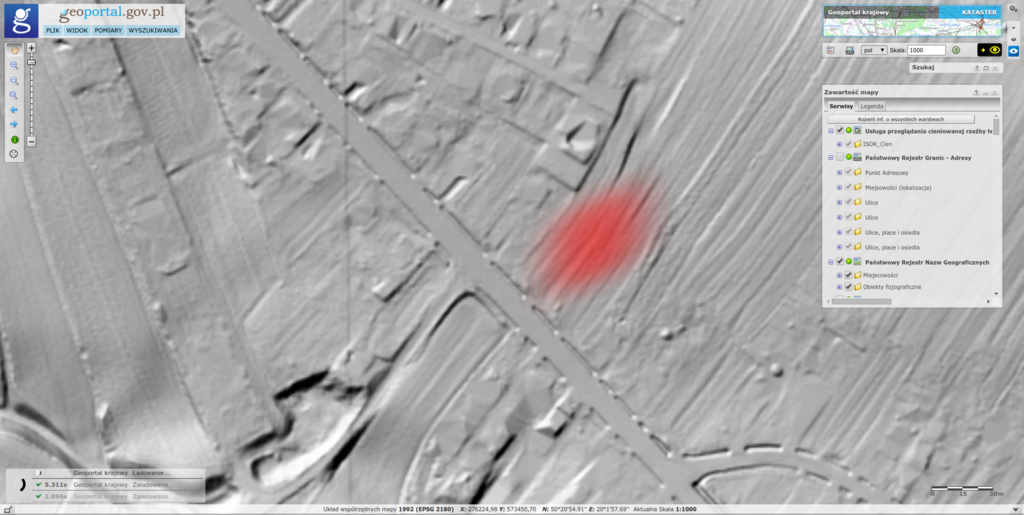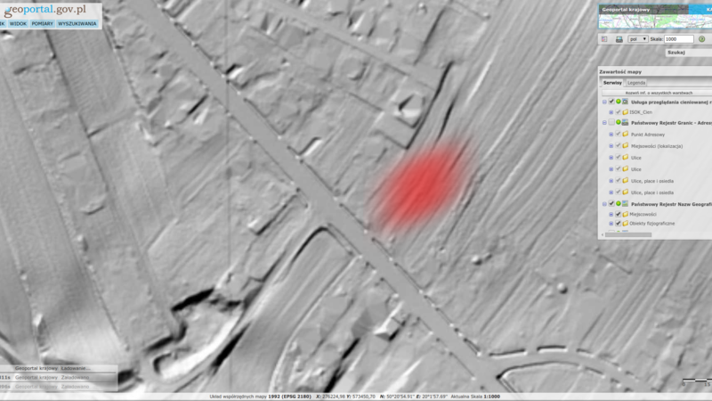 Pomiar rzeźby terenu (LIDAR) ukazuje naruszenia spowodowane uprawą pola, nie wskazuje na zmiany, które można interpretować jako miejsce zbiorowego grobu.