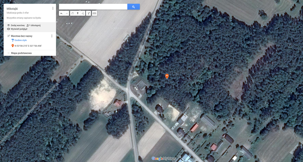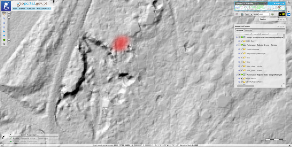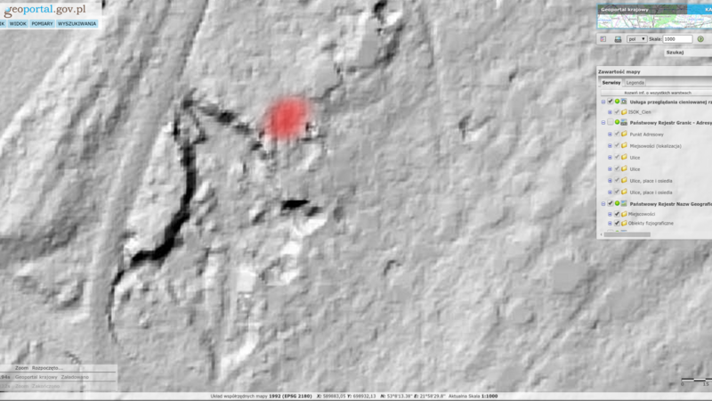 W trakcie wizji lokalnej dnia 02.10.2017 r. przeprowadzono badania georadowe w miejscu precyzyjnie wskazanym przez świadka (GPS: N53°08.210′E021°58.498’). Wyniki badań georadarowych są niekonkluzywne dla tej lokalizacji.