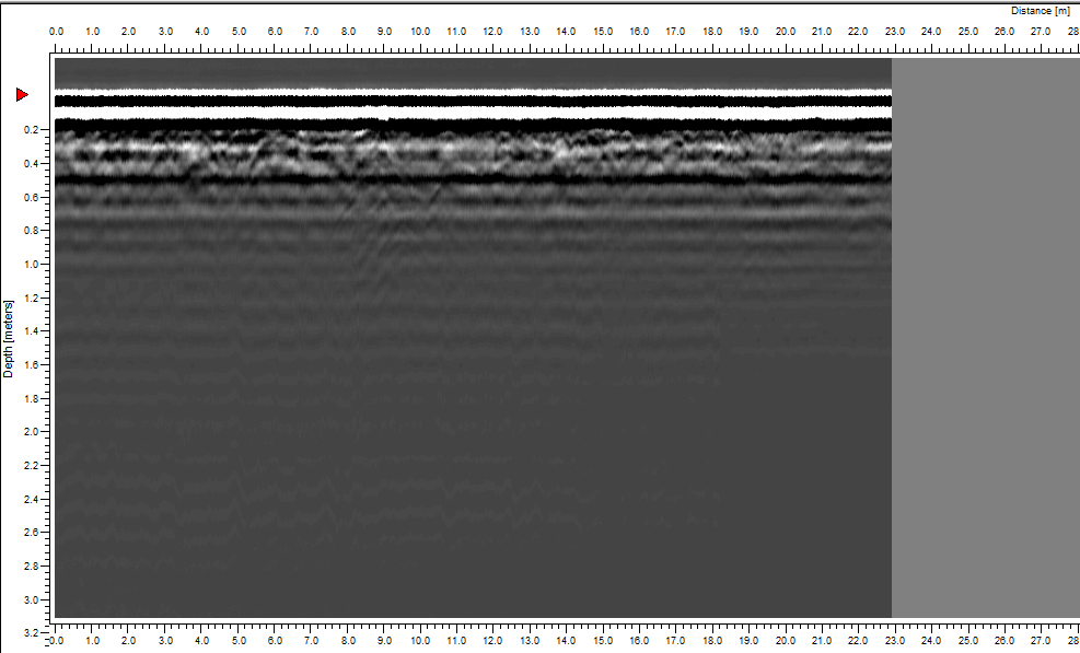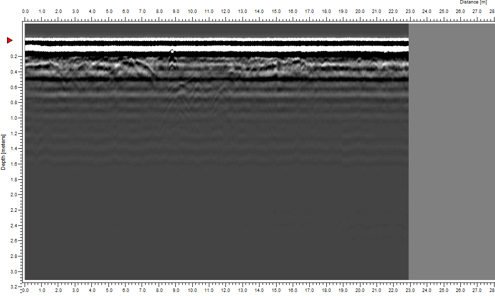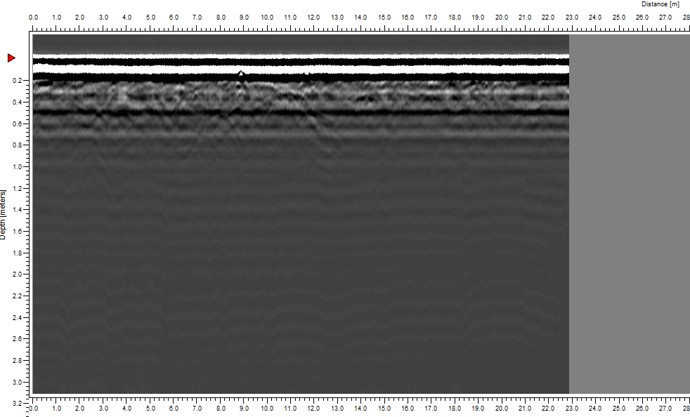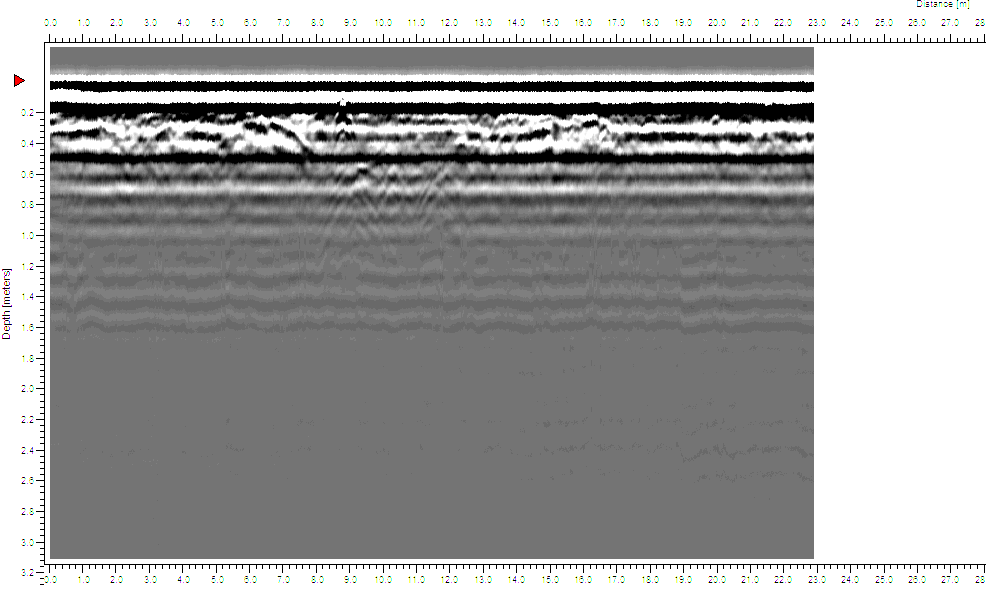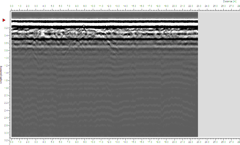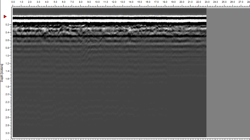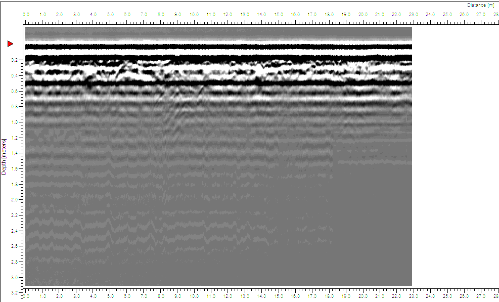 W trakcie wizji lokalnej dnia 06.07.2015 r. przeprowadzono badania georadarowe. Wyniki badań ujawniły obecność anomalii w miejscu wskazanym przez świadka (GPS: N50°56.475’ E021°38.731’). Przybliżony format anomalii: długość ok. 3,0 m , szerokość ok. 2,0 m, głębokość ok. 0,80 m (p.p.t.).