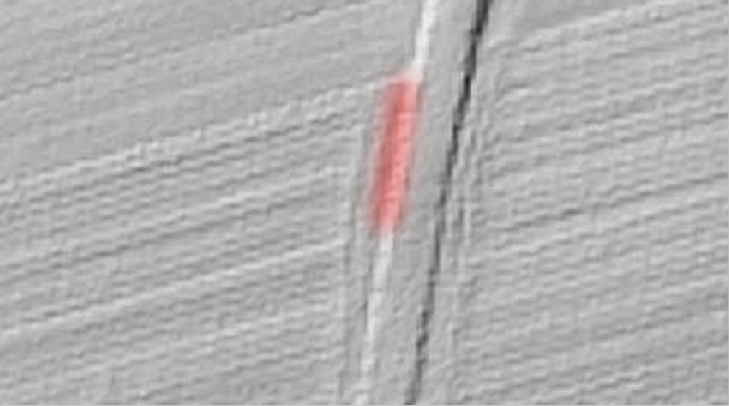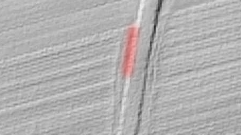 Pomiar rzeźby terenu (LIDAR) zarejestrował długą depresję, stanowiącą pobocze usypanej szutrowej drogi. Miejsce wskazane przez świadka mieści się w obszarze ujawnionej depresji. Pomiar rzeźby terenu (LIDAR) w tym przypadku nie jest pomocny.