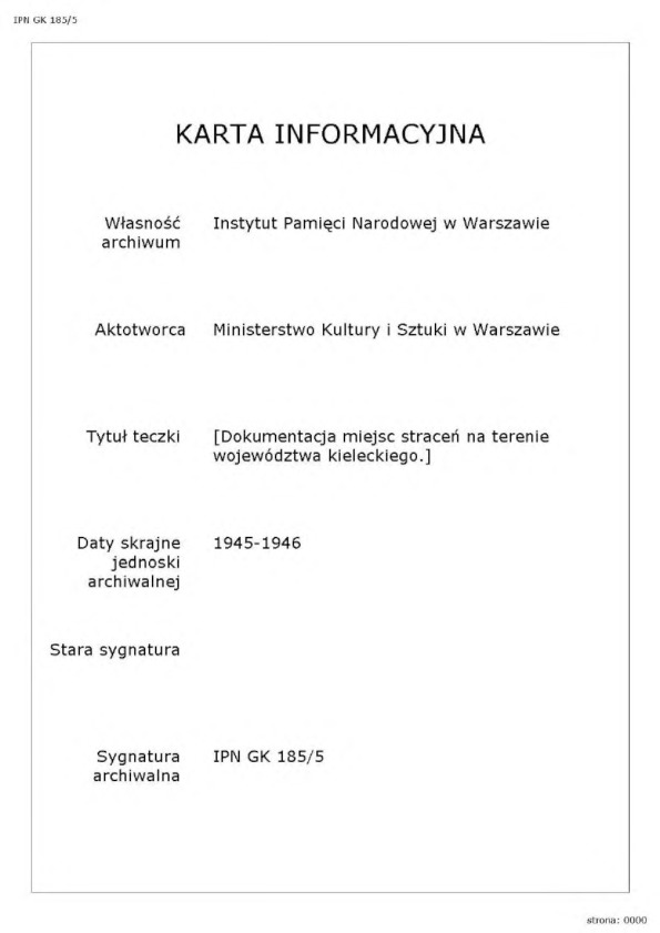 IPN GK 185/5, Dokumentacja miejsc straceń na terenie woj. kieleckiego.