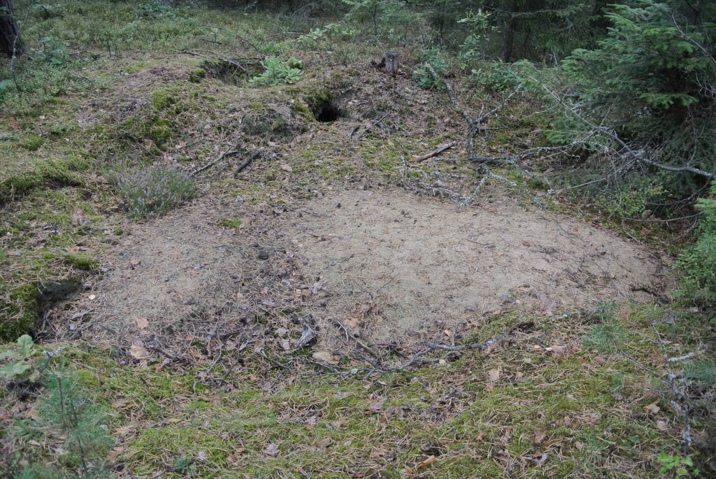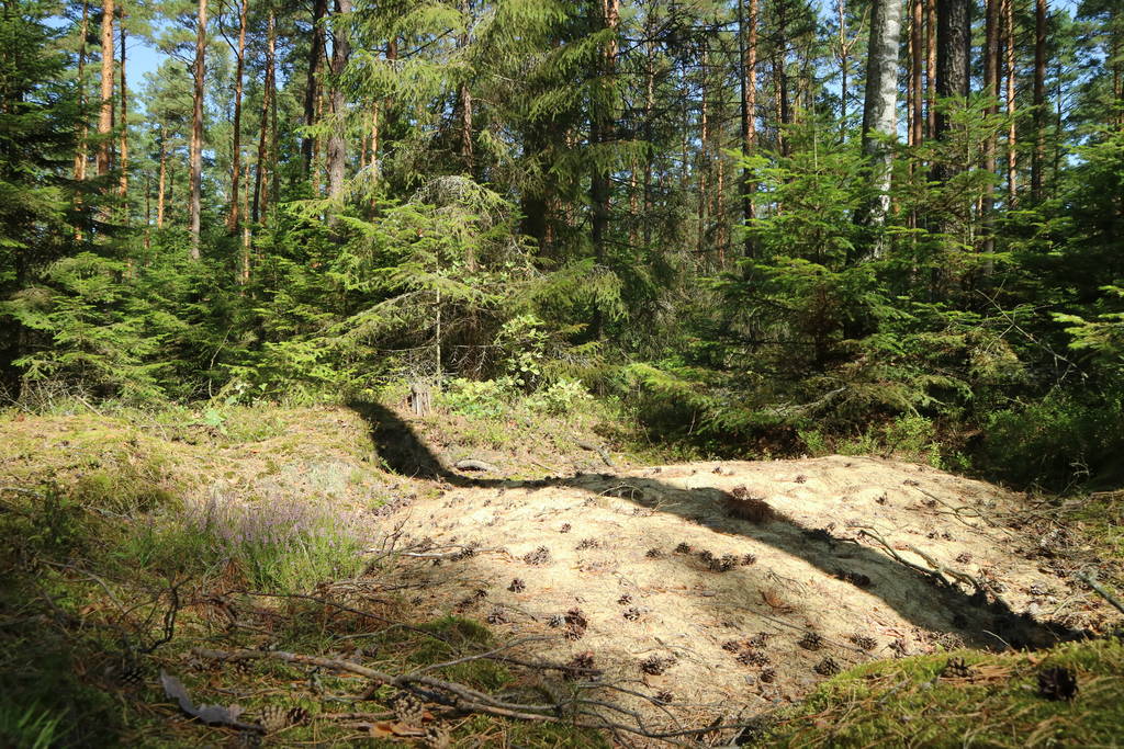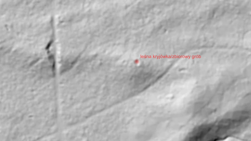 Pomiar rzeźby terenu (LIDAR) wyraźnie ukazuje wzniesienie, na którym mieści się zapadnięta kryjówka i zbiorowy grób.