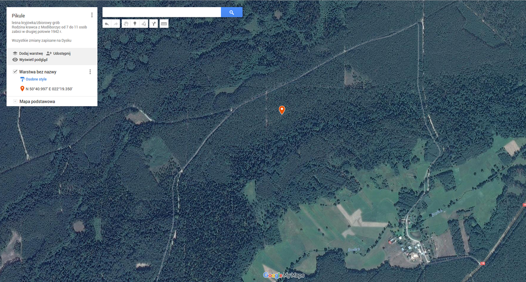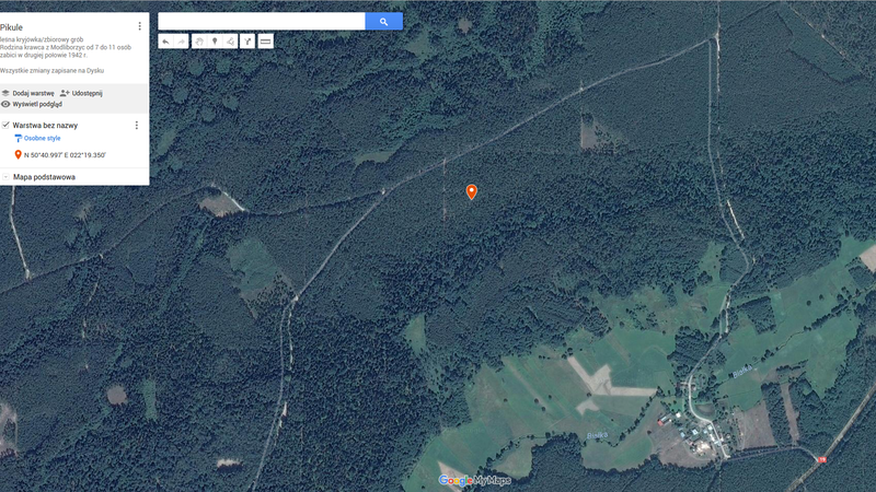 Las w pobliżu miejscowości Pikule (ziemianka).Informacje nt. zbrodni