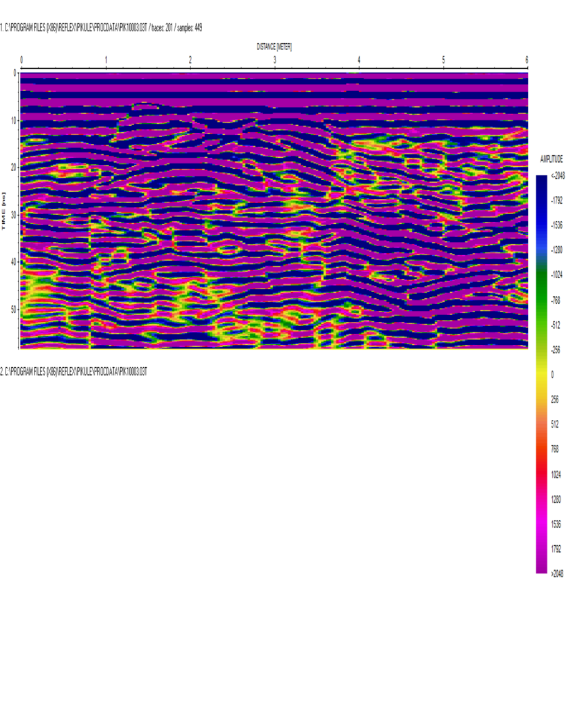 W dniu 03.10.2022 r. przeprowadzono badania z użyciem georadaru MALA X3M (500 Mhz) w miejscu wskazanym przez świadka, jako kryjówka oraz miejsce zagrzebania ofiar. Wykonano 3 profile georadarowe o nazwach: PIK10001-PIK10003, na których zarejestrowano wyraźny zbiór anomalii pochodzących od widocznego w terenie zapadliska, które jest pozostałością po ziemiance.