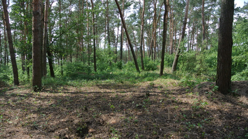W trakcie wizji lokalnej dnia 30.06.2015 r. przeprowadzono badania georadarowe w miejscu odnalezienia szczątków ludzkich i wskazywanym jako zbiorowy grób (GPS: N52°43.345’E018°23.086’). Wyniki badań potwierdziły obecność licznych anomalii. Format strefy przebadanej to: długość ok. 8,0 m, szerokość ok. 4,0 m, głębokość ok. 1,0 – 1,4 m (p.p.t.). Miejsce to wymaga dalszych kompleksowych badań geofizycznych.