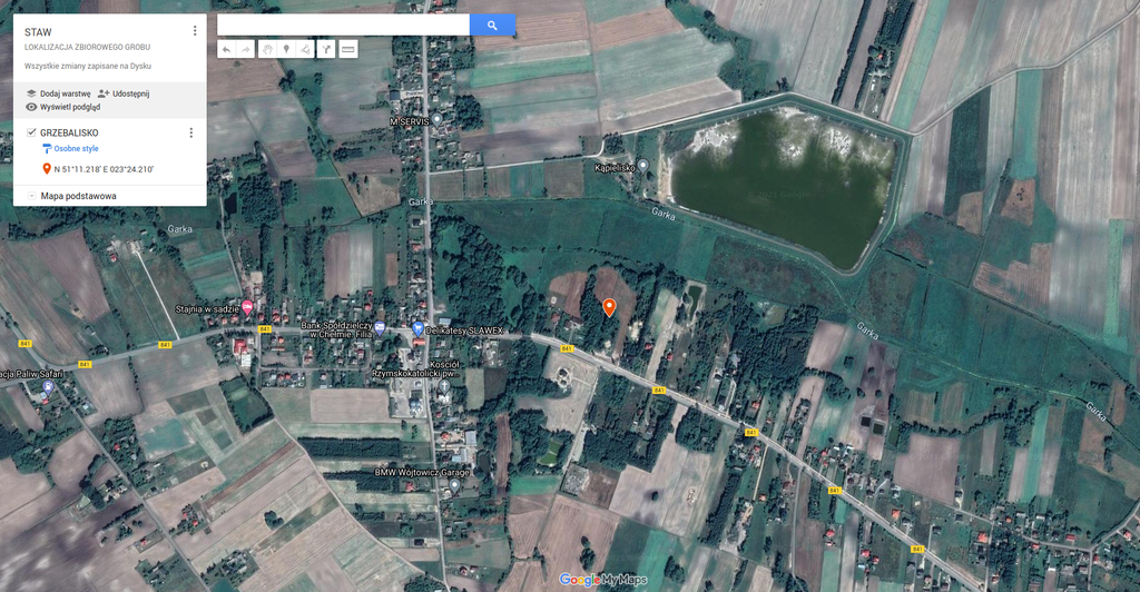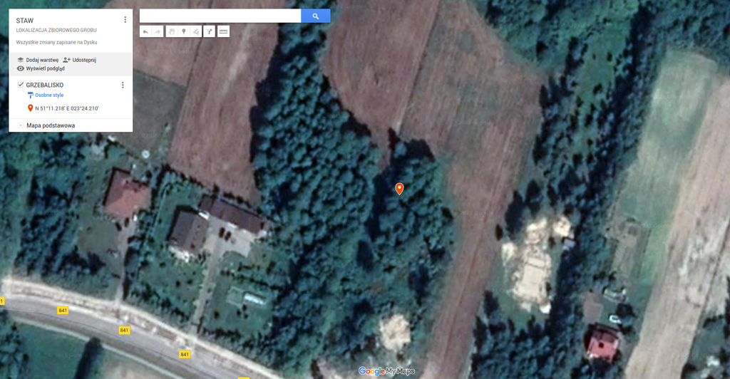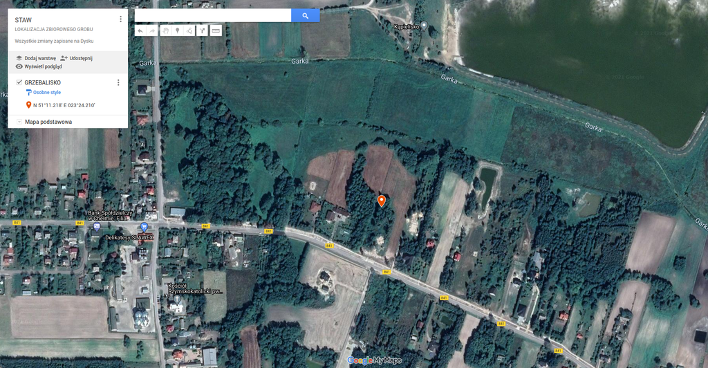 W dniu 13.03.2019 r. przeprowadzono wizję lokalną w miejscu precyzyjnie wskazanym jako grzebalisko ofiar Zagłady (GPS: ). Lokalizacja charakteryzuje się rozległą i głęboką depresją z podmokłym dnem. Miejsce to znajduje się ok. 100 metrów od drogi biegnącej ze Stawu do miejscowości Parypse. Obraz rzeźby terenu (LiDAR) wyraźnie ukazuje depresję o przybliżonych wymiarach 43 mb na 22 mb.