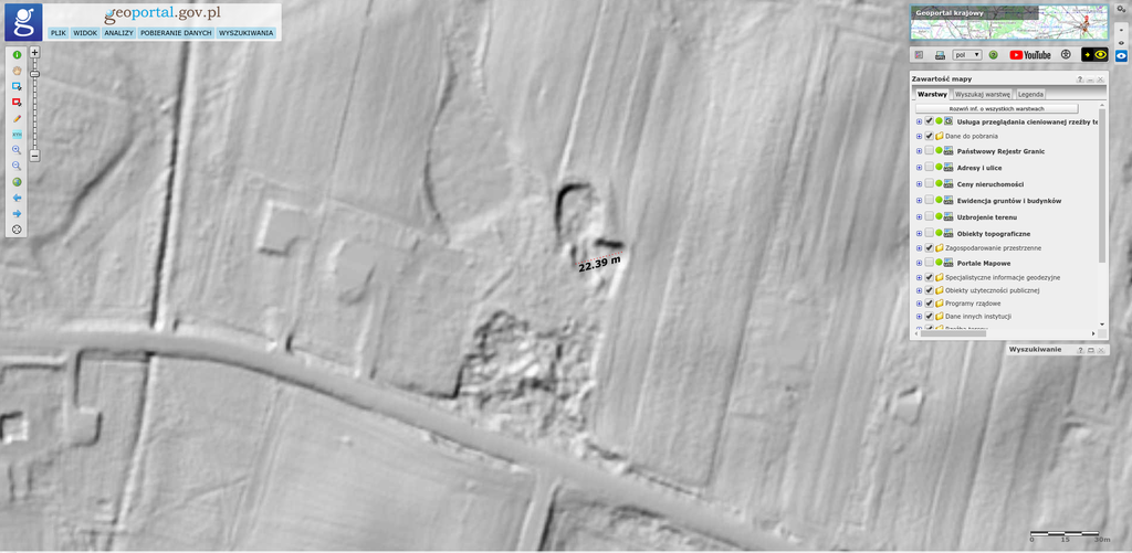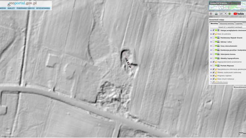 Nie prowadzono badań z użyciem georadaru, w związku z podmokłą glebą występującą w tym obszarze.
