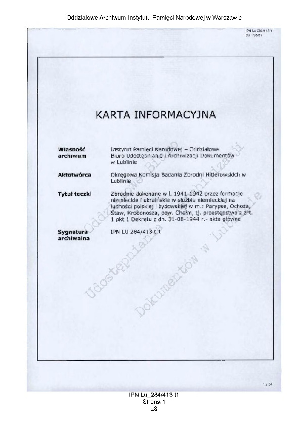 IPN Lu 284/413/ tom 1, Zbrodnie dokonane w l.1941-1942 przez formacje niemieckie i ukraińskie w służbie niemieckiej i żydowskiej w. m.: Parypse, Ochoża, Staw, Krobonosz, pow. Chełm