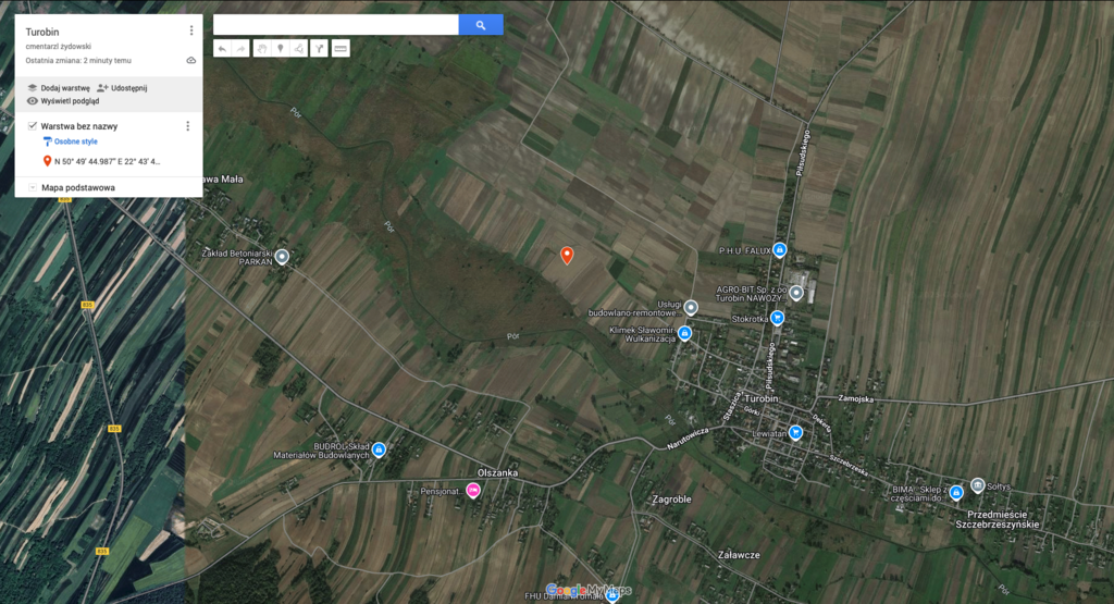 4 listopada 2024 r. odbyliśmy wizję lokalną cmentarza żydowskiego w Turobinie. Nekropolia jest obecnie własnością prywatną przekształconą w pole orne. Nie zachowały się żadne naziemne oznaki cmentarza. W czasie Holocaustu cmentarz był miejscem zakopywania ciał ofiar mordów na żydowskiej ludności miasteczka.