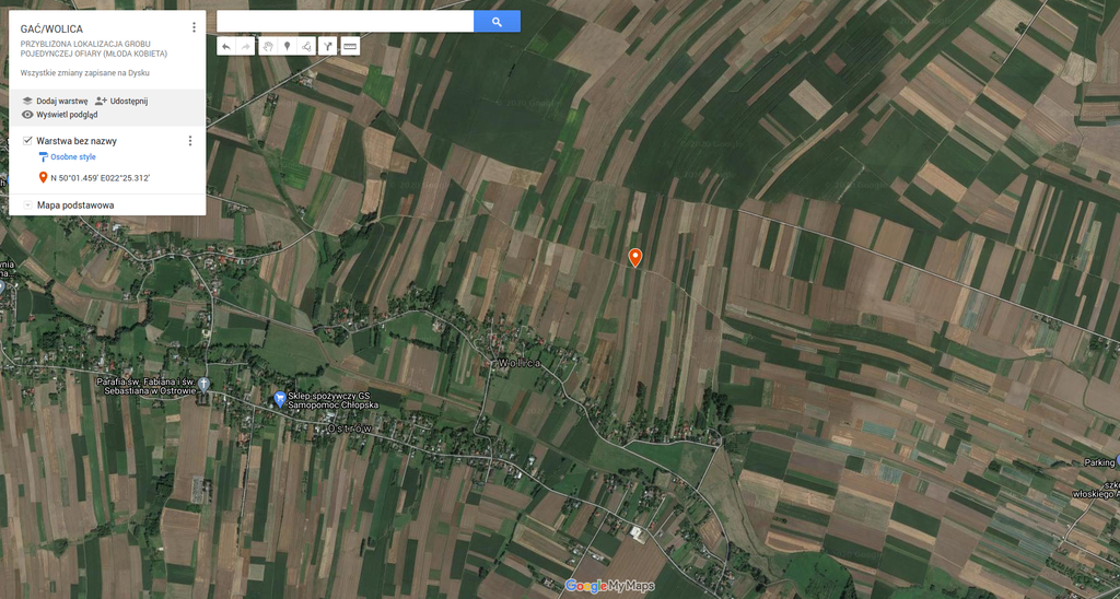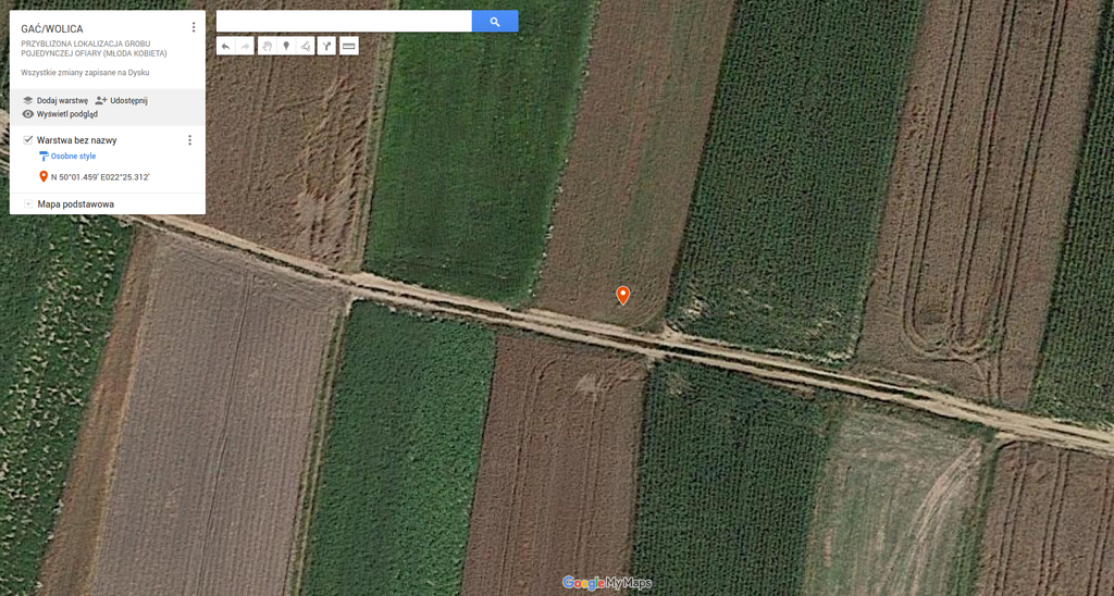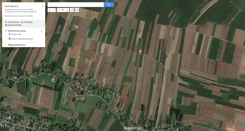 W dniu 13.08.2020 r. przeprowadzono wizję lokalną w celu ustalenia lokalizacji grobu pojedynczej ofiary. Obszar który został wskazany przez świadków jest zlokalizowany wśród pól ornych (GPS: N 50°01.459′ E022°25.312′). Grób według opisów świadków, mieści się na polu ornym, tuż przy drodze i prawdopodobnie blisko osi miedzy.