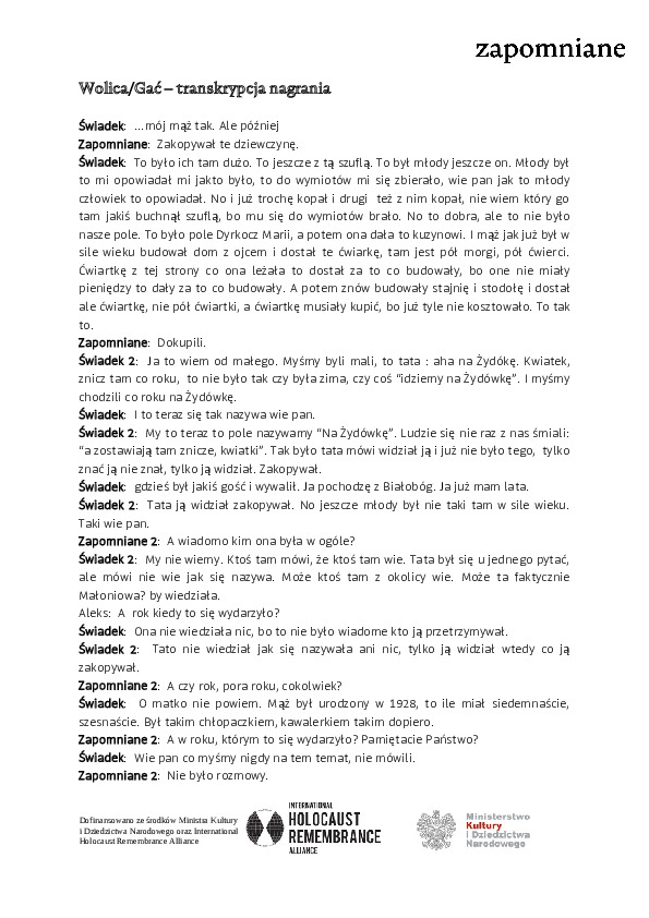 Wolica-Gać - transkrypcja nagrania